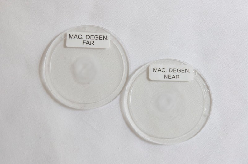 Interchangeable lens that approximately simulates a central field loss looking at something in the distance.